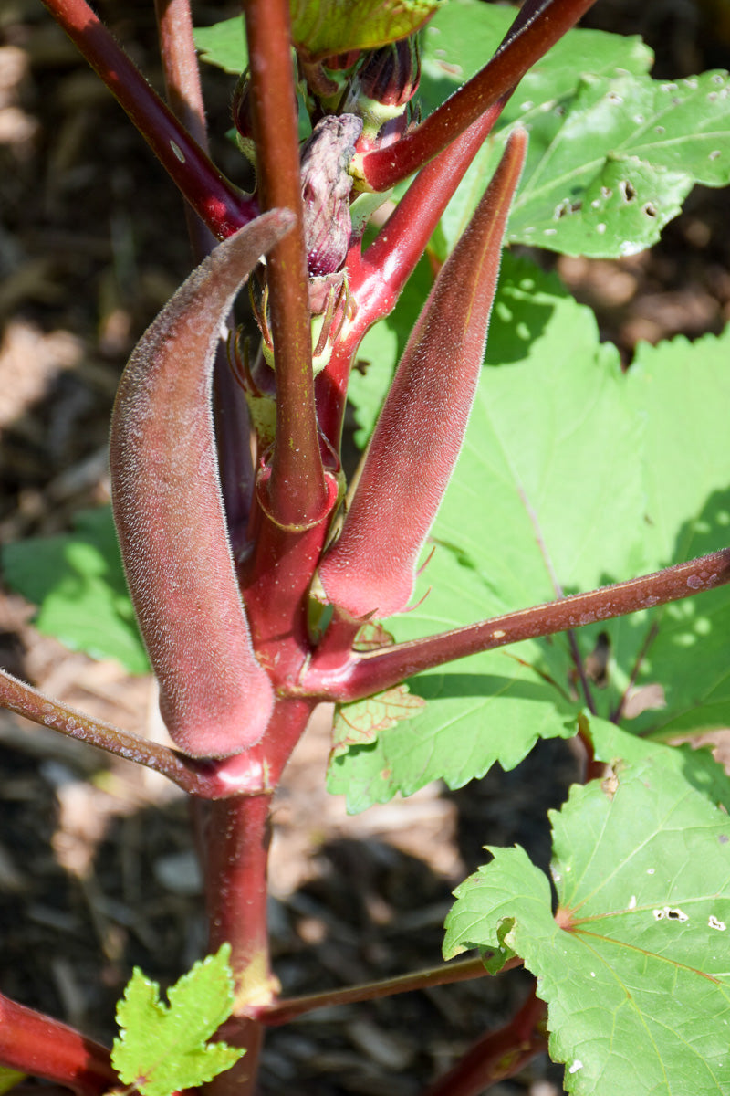 Candle Fire Okra is an annual vegetable plant that is commonly grown for its edible qualities. It produces red pointy pods which are typically harvested when mature. The pods have a mild taste and a crunchy texture.
