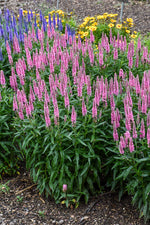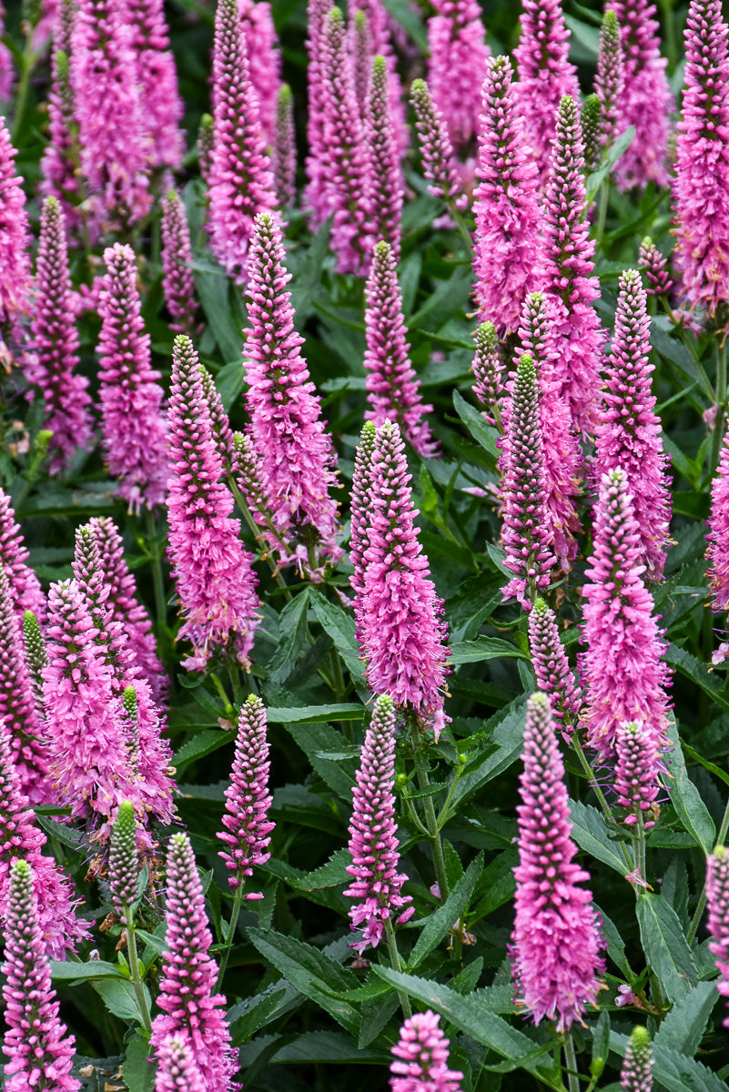 Skyward™ Pink Long-leaf Speedwell has masses of beautiful spikes of pink flowers rising above the foliage from late spring to early summer, which are most effective when planted in groupings. Its serrated oval leaves remain dark green in color throughout the season.