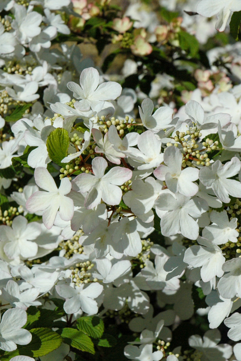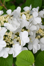 Pink Beauty Doublefile Viburnum is covered in stunning pink lacecap flowers held atop the branches in mid spring. The red fruits are held in abundance in spectacular clusters from mid summer to early fall. It has dark green deciduous foliage. The serrated pointy leaves turn an outstanding brick red in the fall.
