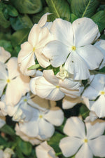 Cora® White Vinca is a dense herbaceous annual with a ground-hugging habit of growth. Its medium texture blends into the garden, but can always be balanced by a couple of finer or coarser plants for an effective composition.
