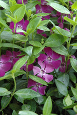 Wine Periwinkle has masses of beautiful burgundy flowers along the stems from mid to late spring, which are most effective when planted in groupings. Its small glossy oval leaves remain dark green in color throughout the year.