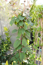 A fruit-producing variety and a male pollinizer together in the same container, providing a higher yield of small, delicious smooth-skinned fruit. This vigorous vine offers glossy foliage and fragrant white blooms in early summer, making it a showy landscape specimen. Attractive on an arbor or trellis. Deciduous.