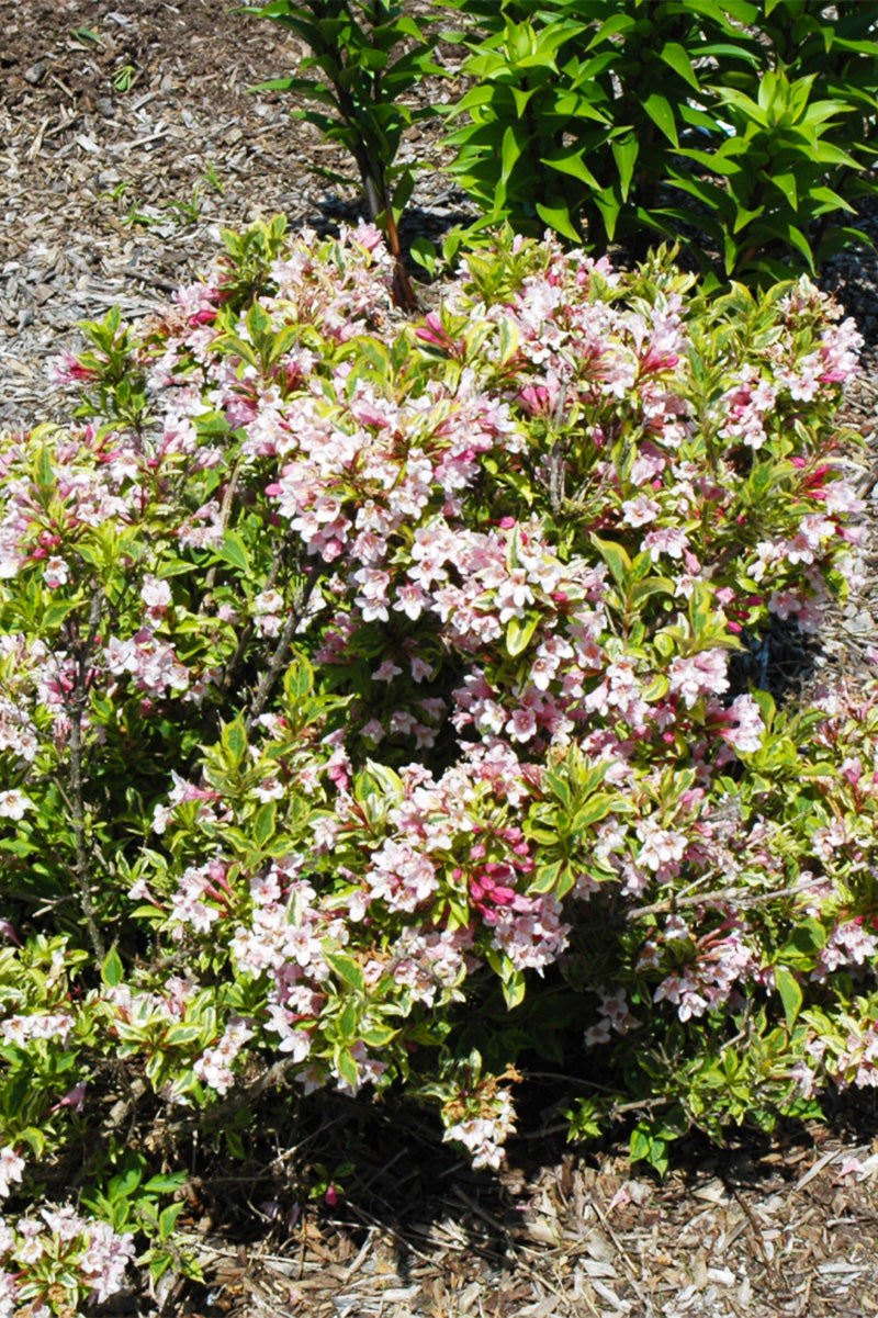 This visually stunning variety forms a low mounded shrub with variegated leaves of green and light yellow, splashed with pink. Rose pink trumpet-shaped flowers attract hummingbirds and butterflies in spring. Very showy, ideal for the mixed garden border. This shrub should only be grown in full sunlight. It prefers to grow in average to moist conditions, and shouldn't be allowed to dry out. Also note that when growing plants in outdoor containers and baskets, they may require more frequent waterings than they would in the yard or garden.
