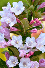Weigela Tower of Flowers™ Apple Blossom is a deciduous flowering shrub offering 3 seasons of interest. Apple Blossom has an unusual, neat habit with erect branches. Large shell-pink blooms are borne in clusters along the entire stem, creating a column of flowers in late spring/early summer, set against oval leaves, which emerge bronzed but mature to dark green. Nectar-rich, the long-lasting tubular flowers attract bees, butterflies, and hummingbirds.